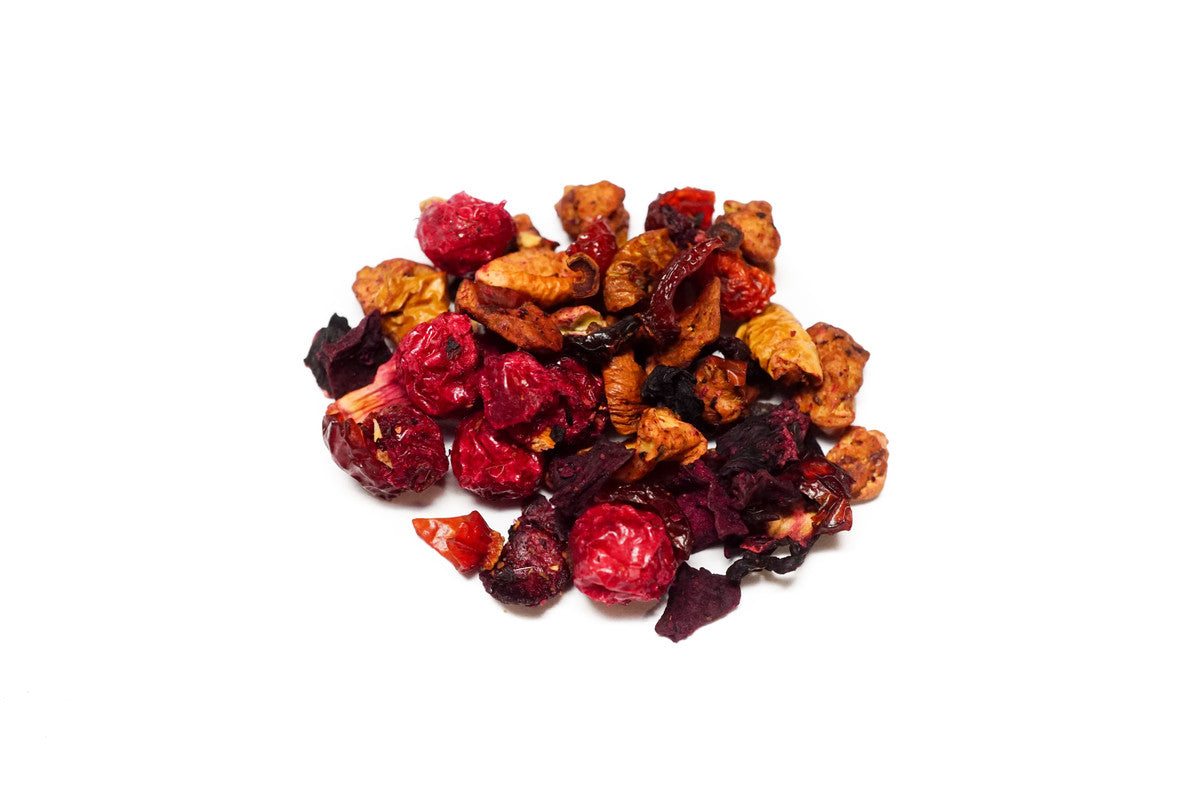 Sastāvdaļas: āboli, hibisks, mežrozīšu augļi, sarkanā biete, aprikozes, ķirši, jāņogas, aromātviela.