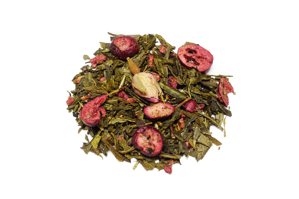 Sastāvdaļas: zaļā tēja (87%), rozā rožu pumpuri, liofilizēti aveņu gabaliņi, aromatizētājs, liofilizētas dzērveņu šķēlītes.