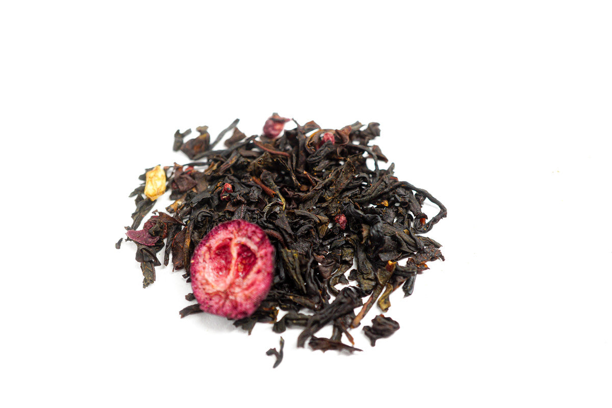Sastāvdaļas: melnā tēja, aromātvielas, lifiolizētas dzērvenes un avenes, granātābolu sēkliņas, peoniju ziedlapas.
