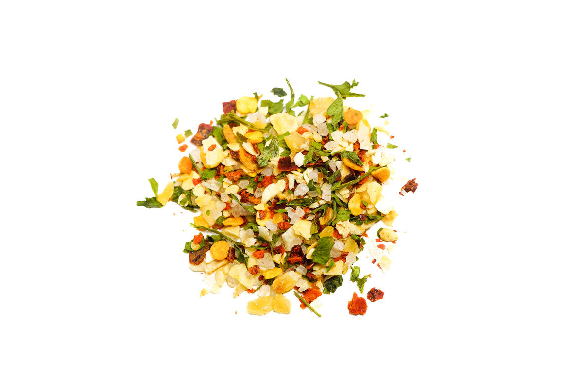 Sastāvdaļas: ķiploki, jūras sāls, asā paprika čili, pētersīļu lapas.