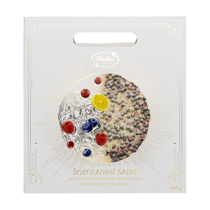 BALTĀ ŠOKOLĀDE AR OGĀM UN AUGĻIEM ''ŠOKOLĀDES SAULE'', 300 g