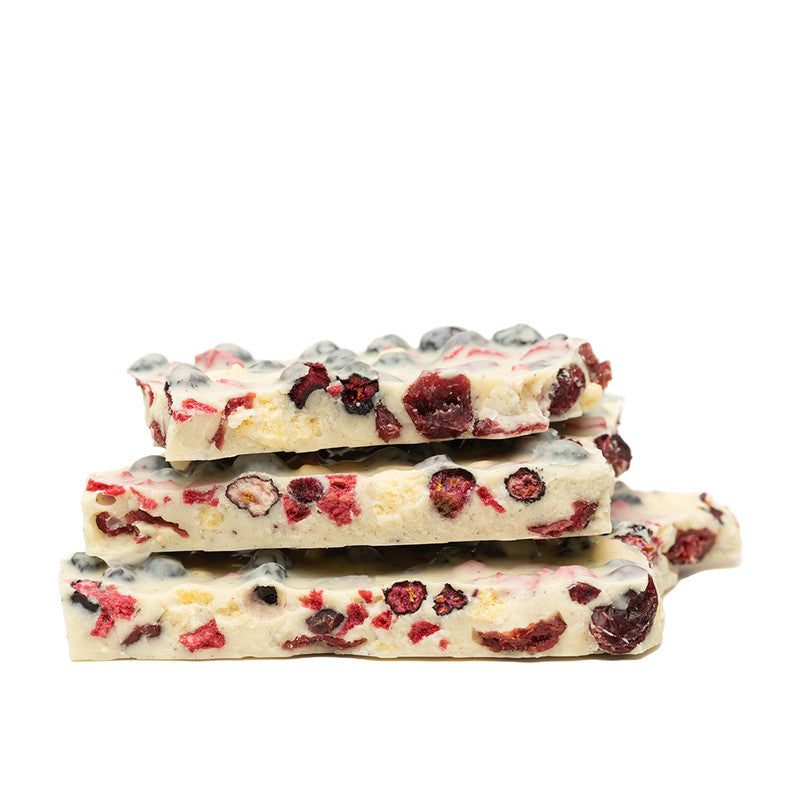 Bagātīgas garšas baltā šokolāde, kurā smalki saplūst bagātīga garšu palete. Ogu un augļu dažādība izceļas ar lielisku aromātu un krāsām, kas vilina un aicina baudīt.