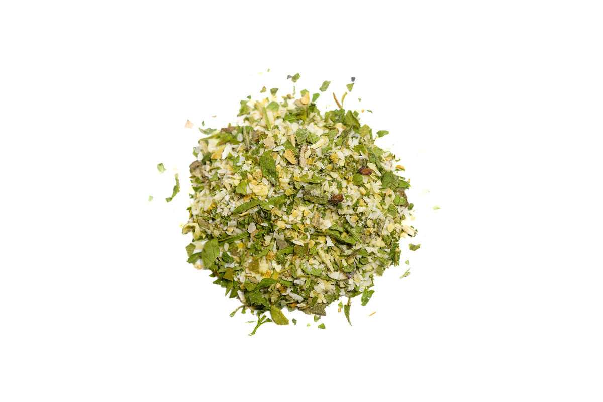 Sastāvdaļas: Ķiploks, sīpoli, pētersīļi, melnie pipari, baziliks, oregano, kurkuma.