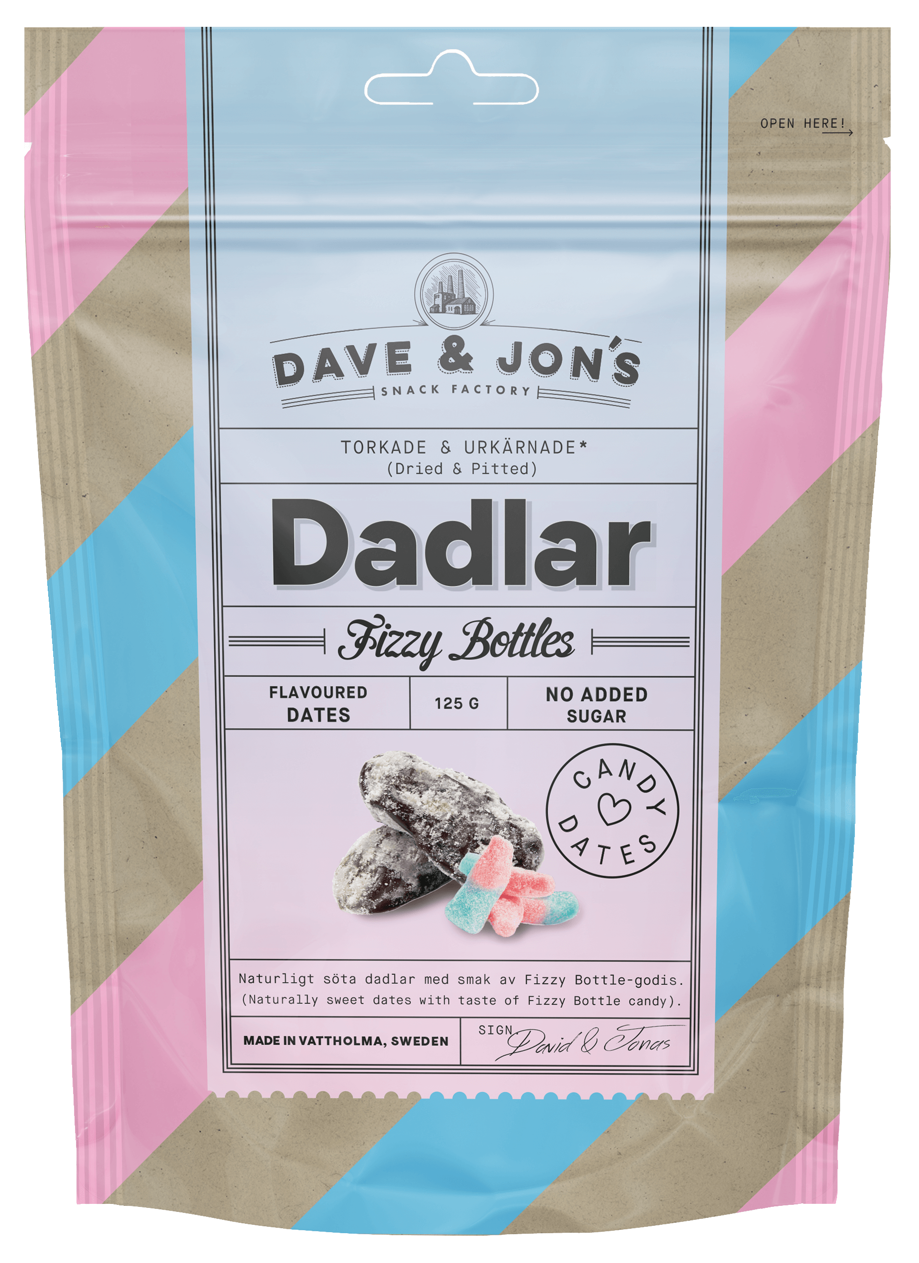 DAVE & JON'S DADLAR DATELES FIZZY BOTTLES, 125g