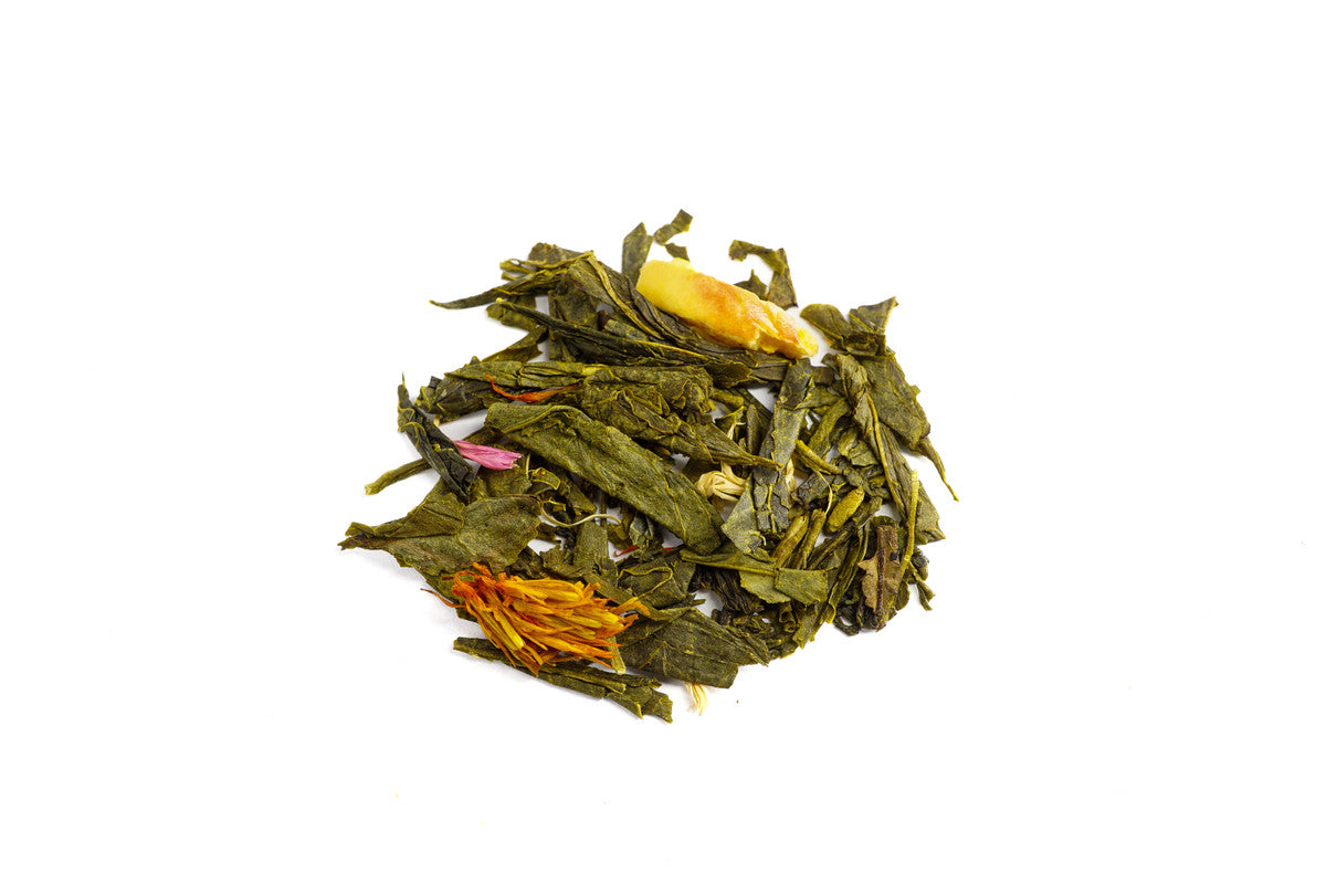 Sastāvdaļas: zaļā tēja (93%), liofilizēti mežrozīšu pumpuriņi, liofilizēti skābo ķiršu gabaliņi, liofilizēti kaltētas pasifloras augļu granulas (glikozes sīrups, koncentrēta marakujas sula, aprikožu mīkstums, modificēta ciete, biezinātājs: nātrija algināts), saflora, rudzupuķu ziedi, aromātviela.