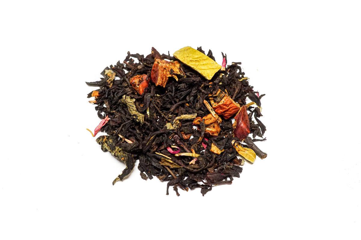 Sastāvdaļas: melnā tēja (75%), ābolu gabaliņi, aromatizētājs, kalnu kazenes lapas, liofilizēti kaltētas kazenes, liofilizēti vīģes gabaliņi, kazeņu lapas, rudzupuķes