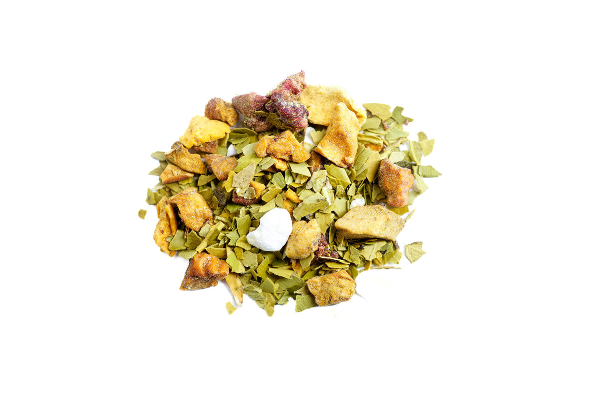 Sastāvdaļas: ābolu gabaliņi, mate (30%), skābu ābolu gabaliņi, aromātviela, lifiolizētas citronu granulas, lifiolizētas citronu miziņas, lifiolizētas granātābolu sēkliņas, granātābolu ziedi.