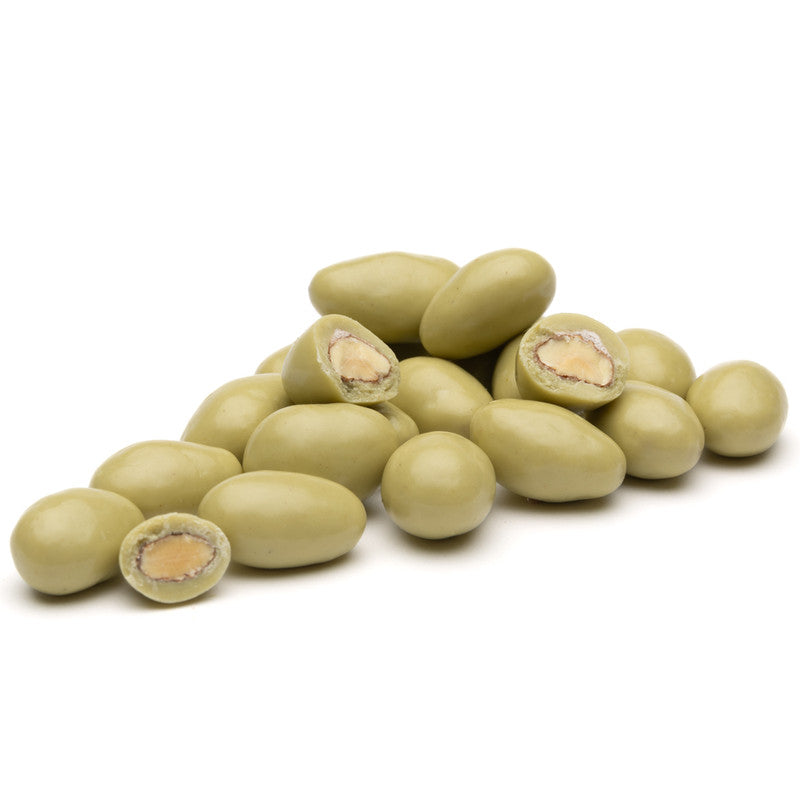 Mandeles ar pistācijām – maigs un izsmalcināts garšas baudījums, kurā baltā šokolāde piešķir patīkamu saldumu.