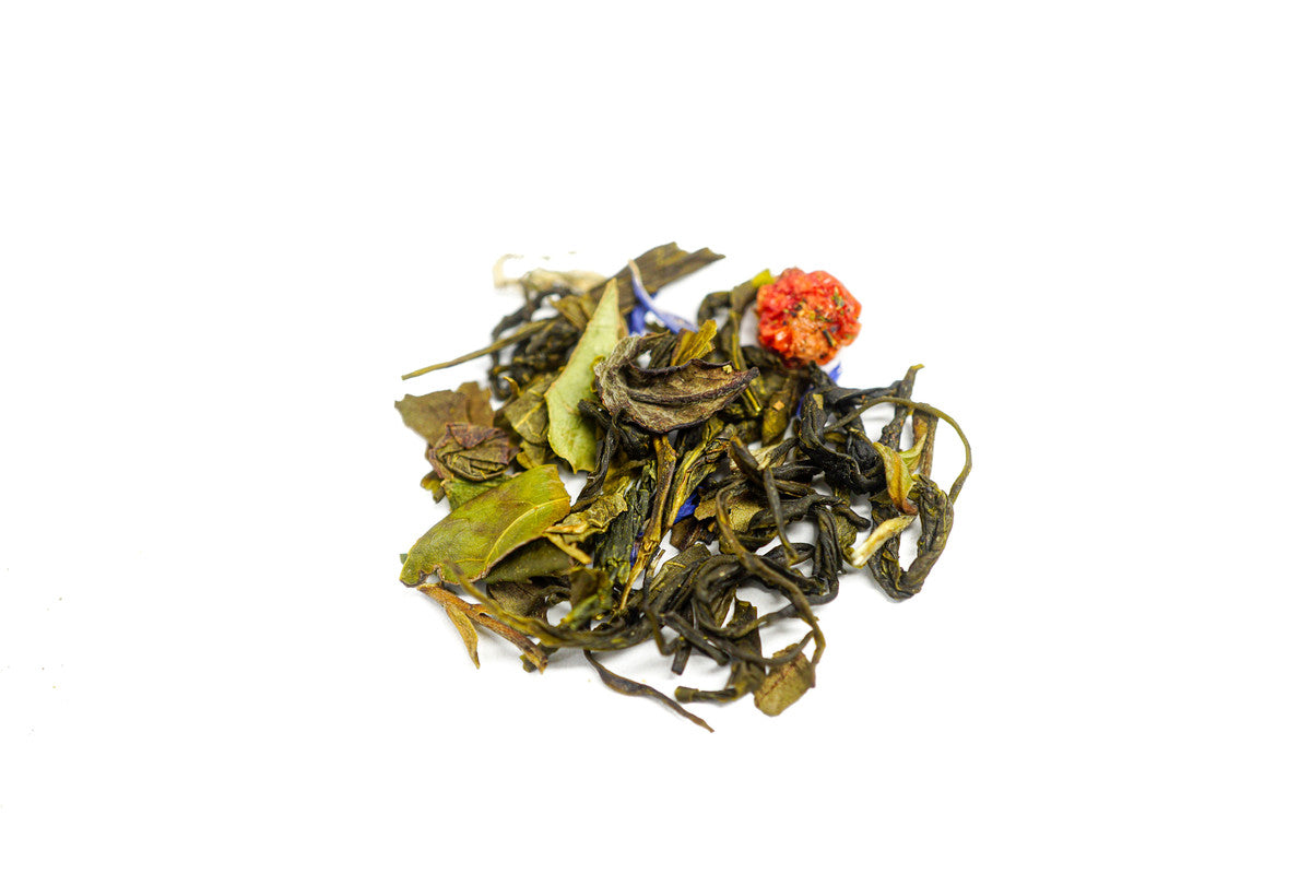 Sastāvdaļas: zaļās tējas Wu Lu, Sencha, Pai Mu Tan, Gun powder, aprikozes, upenes, ginko lapas, jāņogas, rudzupuķu ziedi, aromātviela.