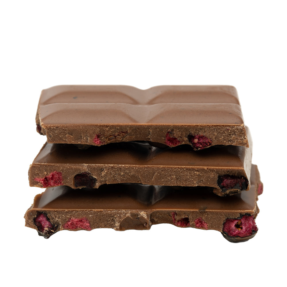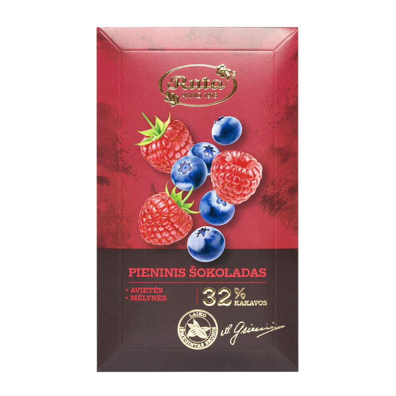 Sastāvdaļas: piena šokolāde (cukurs, kakao sviests, PILNPIENA pulveris, kakao masa, SŪKALU pulveris, PIENA tauki, emulgatori [SOJAS lecitīns, poliglicerīna poliricinoleāts], aromātviela vanilīns), aveņu granulas (4 %; glikozes sīrups, cukurs, avenes (20 %), biezinātājs nātrija algināts), kaltētas mellenes (3 %). ŠĶIEDRVIELU AVOTS. Piena šokolādē kakao sausnas vielu – ne mazāk kā 32,1 %, PIENA sausnas vielu – ne mazāk kā 14,7 %.