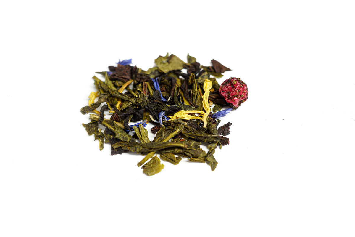 Sastāvdaļas: zaļā tēja (66%) Sencha, oolong tēja (30%), lifiolizētas jāņogas, rudzupuķu ziedi, saulespuķu ziedlapas, aromātviela.