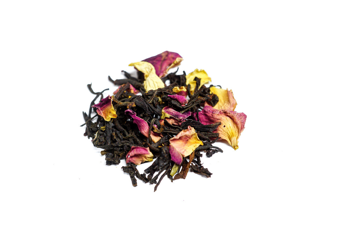 Sastāvdaļas: melnā tēja, rožu ziedlapiņas, aromātviela.