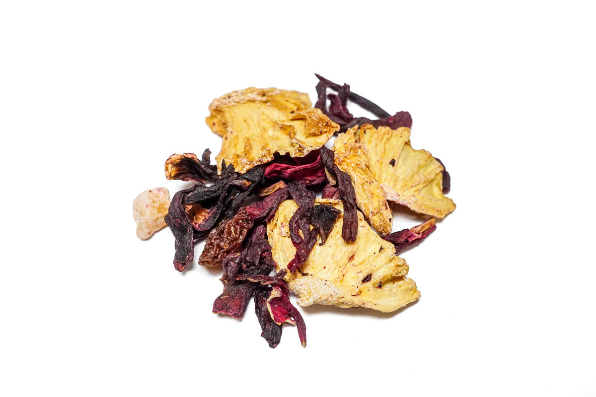 Sastāvdaļas: hibisks, melone (melone, cukurs,fruktozes sīrups), sultana rozīnes, ananasu pārslas, papaijas pārslas, mango pārslas, aromātviela.