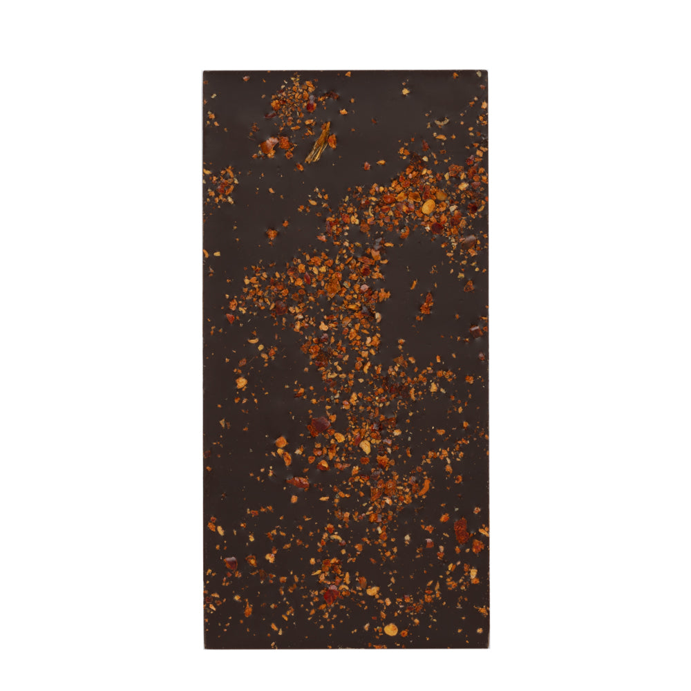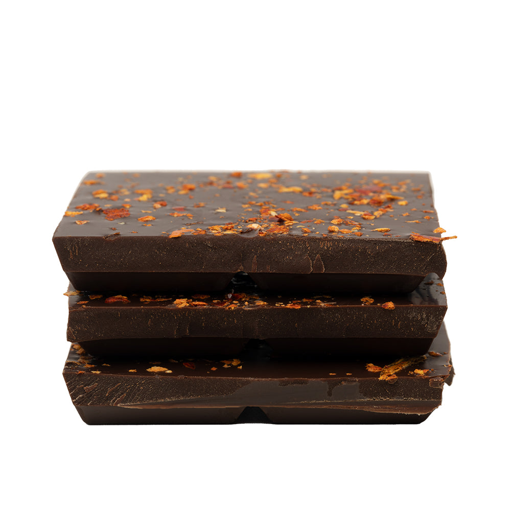 Sastāvdaļas: šokolāde (kakao masa, cukurs, kakao sviests, emulgatori (SOJAS lecitīns, poliglicerīna poliricinoleāts)), kaltēti čili pipari (1,3 %). Šokolādē sausnas kakao vielu – ne mazāk kā 75 %. Šokolādes izcelsme: ES un ārpus ES.