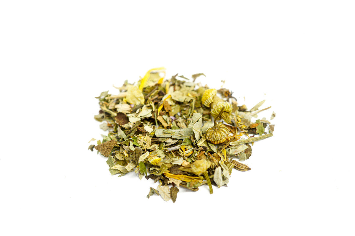 Sastāvdaļas: kazeņu lapas, kumelīšu ziedi, zemeņu lapas, piparmētra, melleņu lapas, melisa, hibiskus