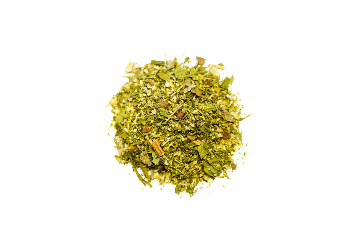 Sastāvdaļas: sīpoli, ķiploki, dilles, baziliks,mpētersīļi, SINEPES, mētras lapiņas, pipari, karijs, kurkuma.
